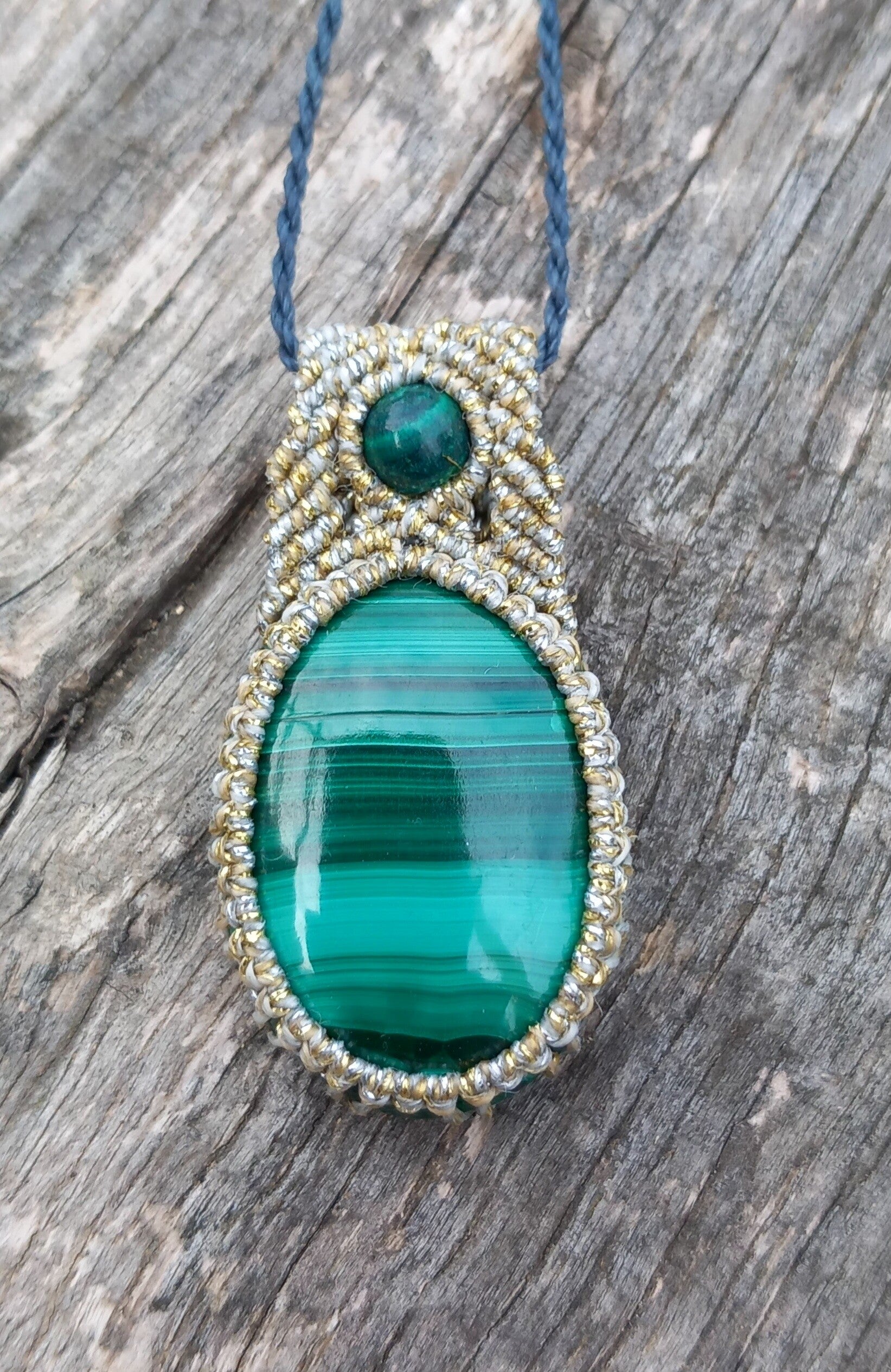 Pendentif en malachite pierre et perle