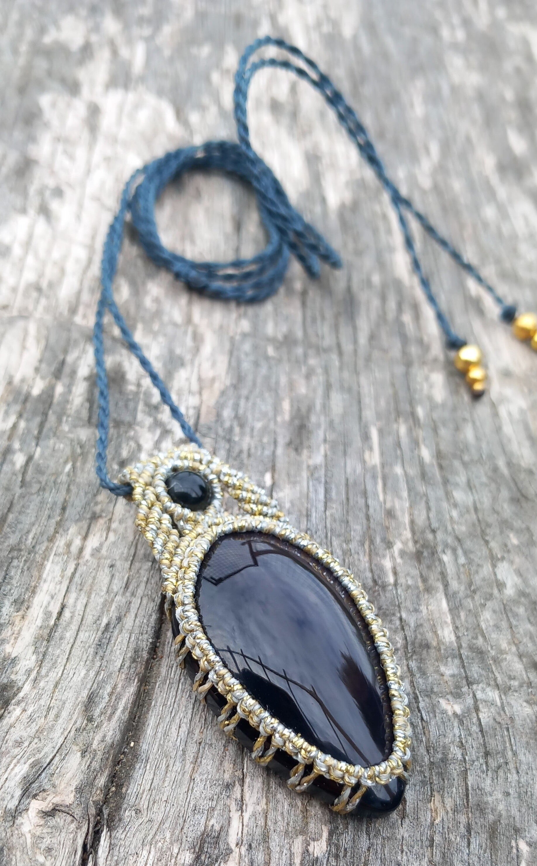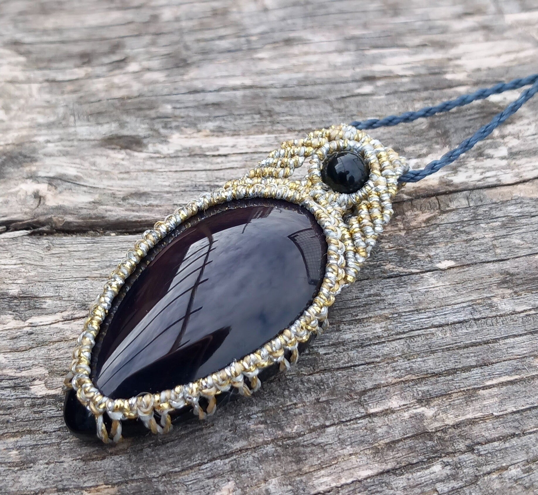 Pendentif en Obsidienne oeil céleste pierre et perle