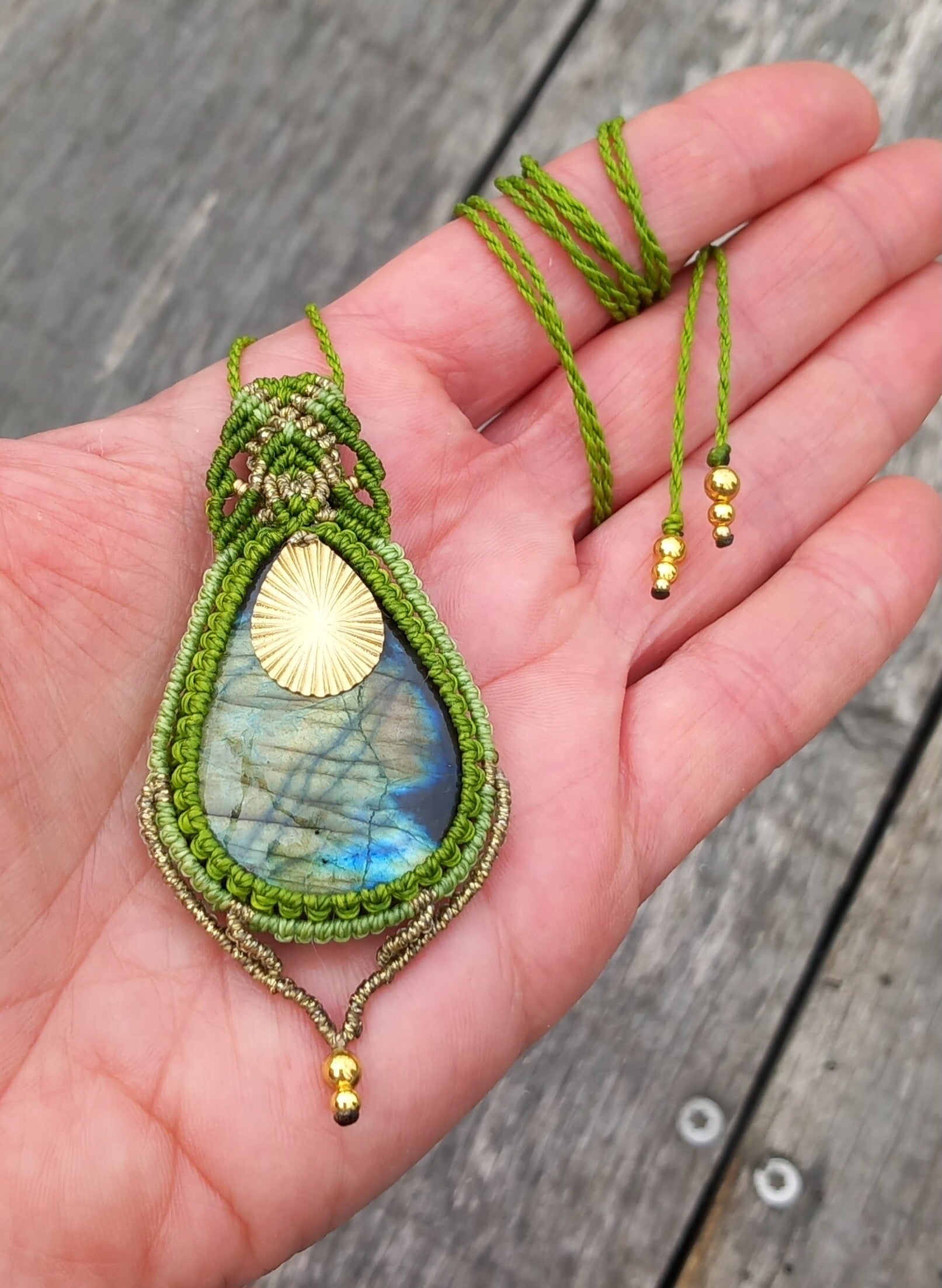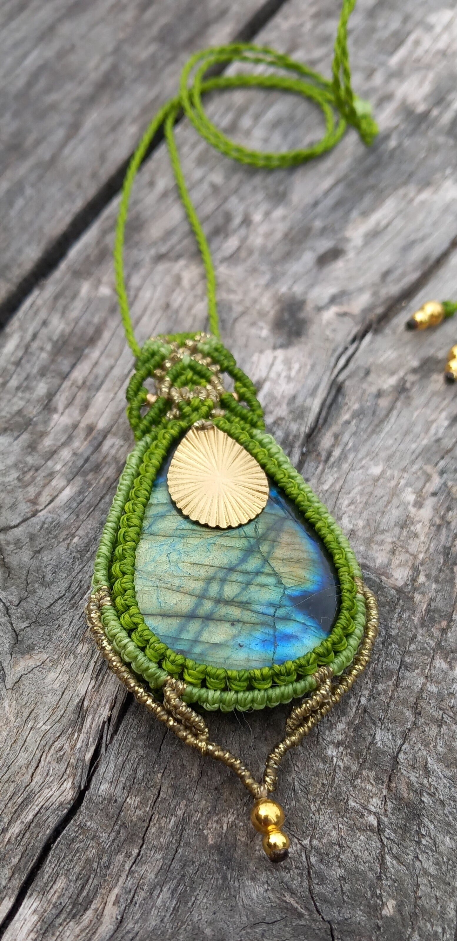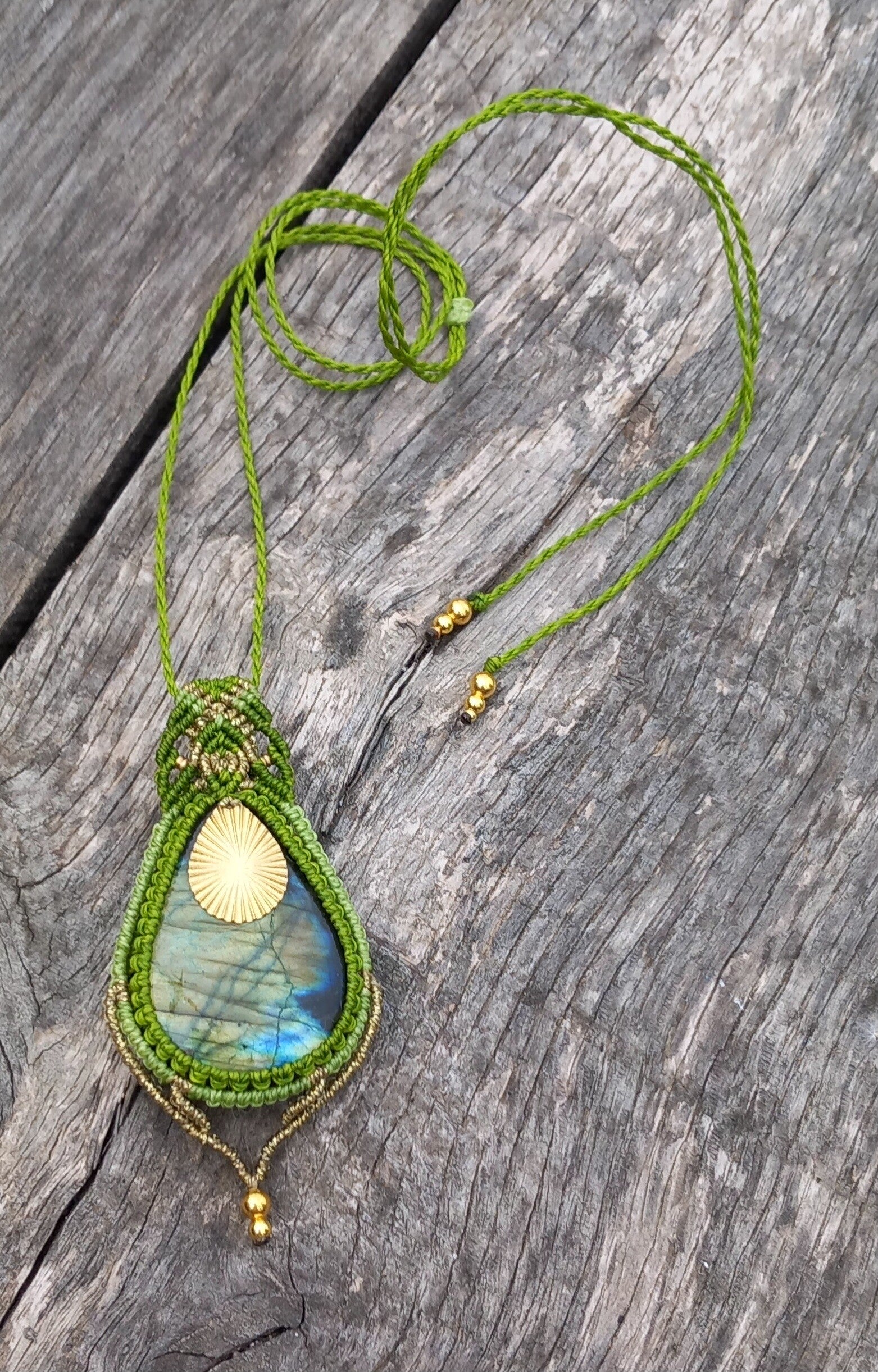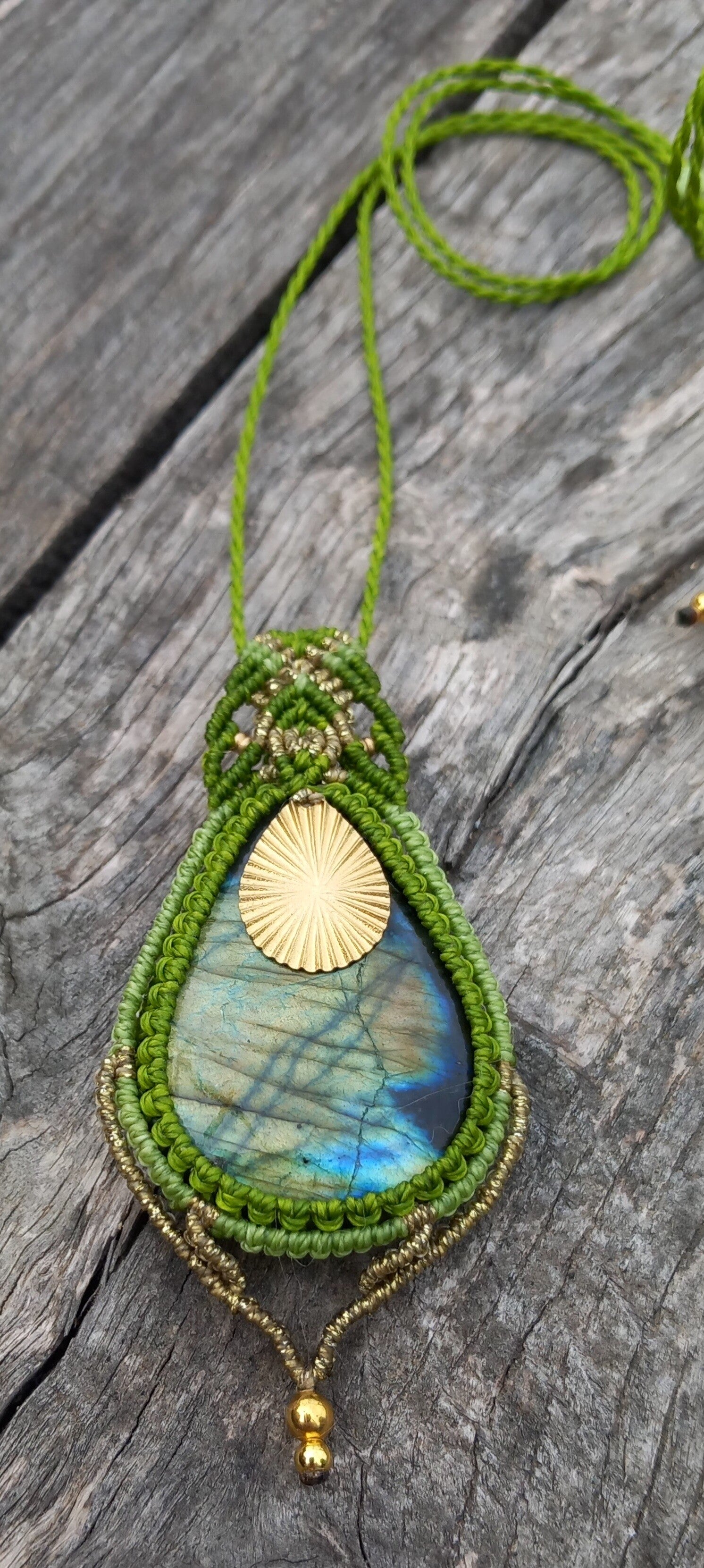 Pendentif avec une labradorite aux reflets jaune-vert-bleu