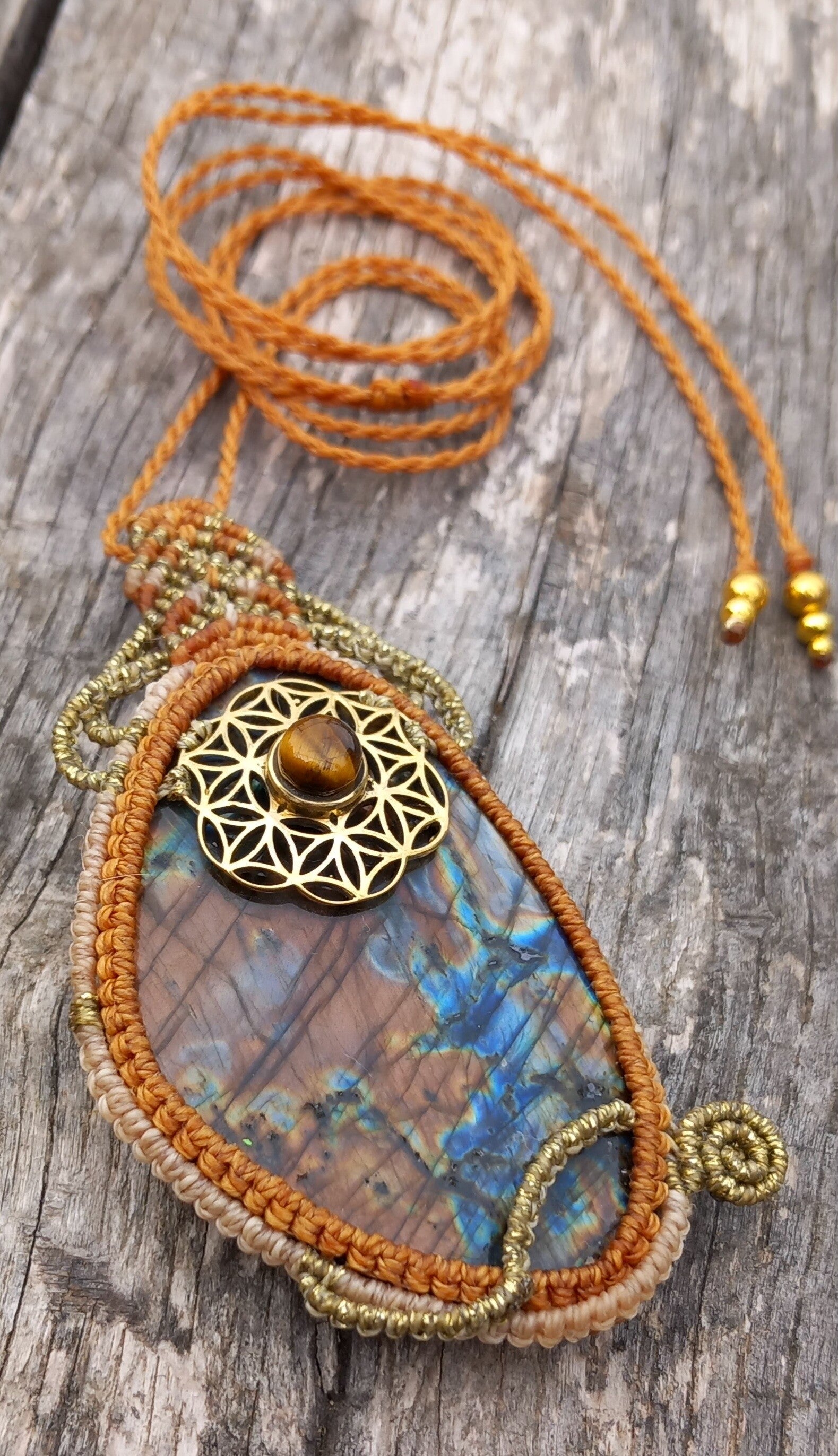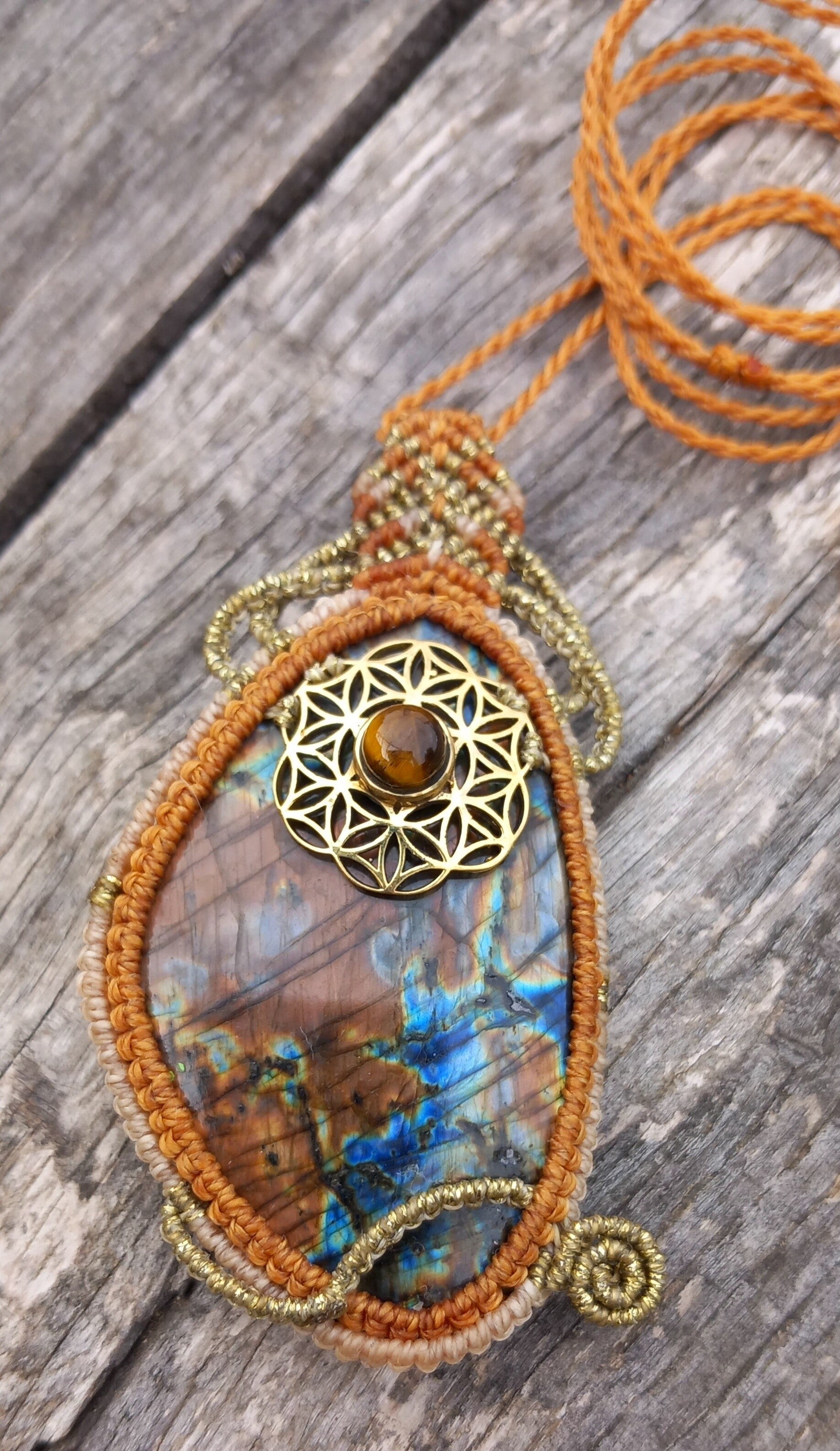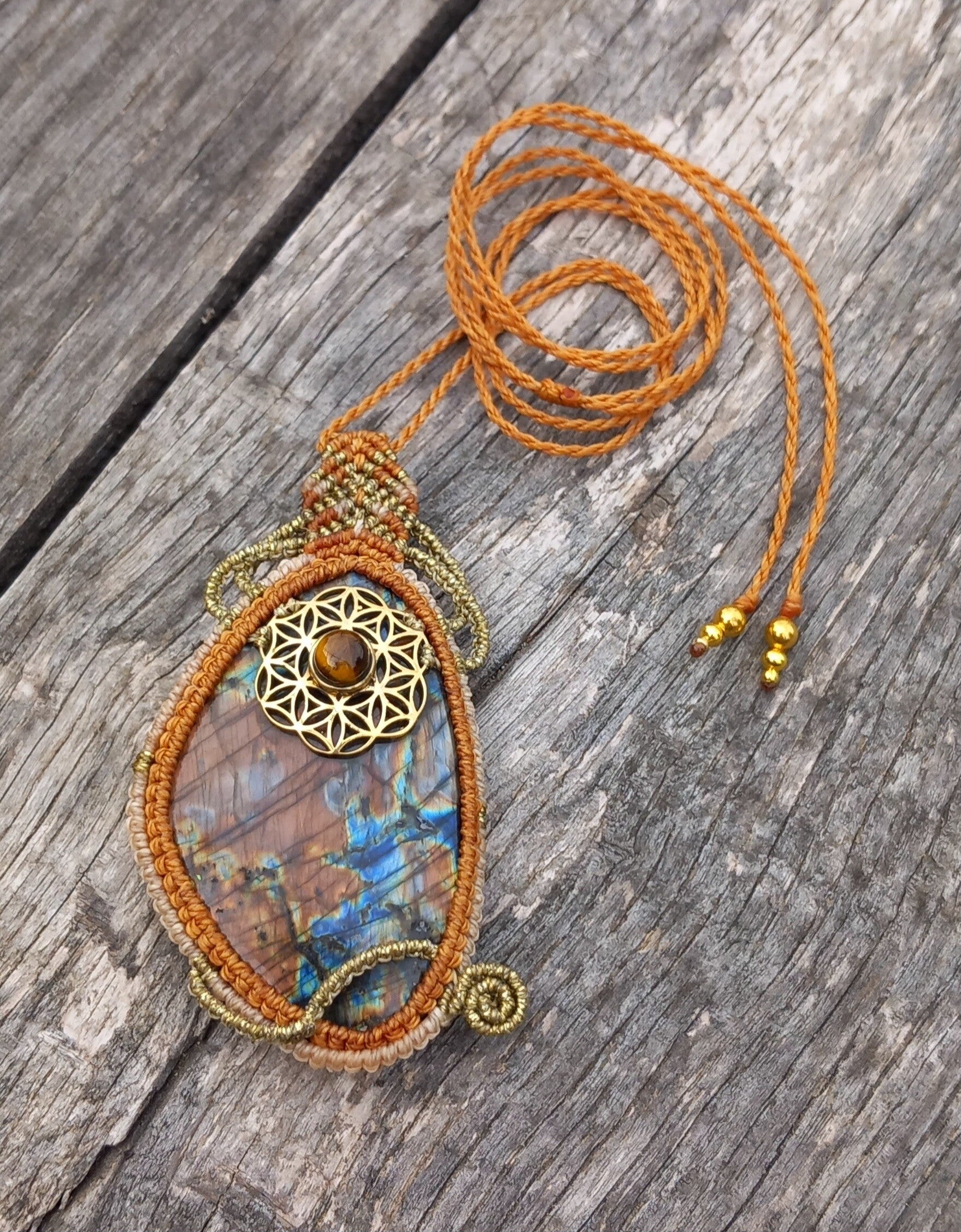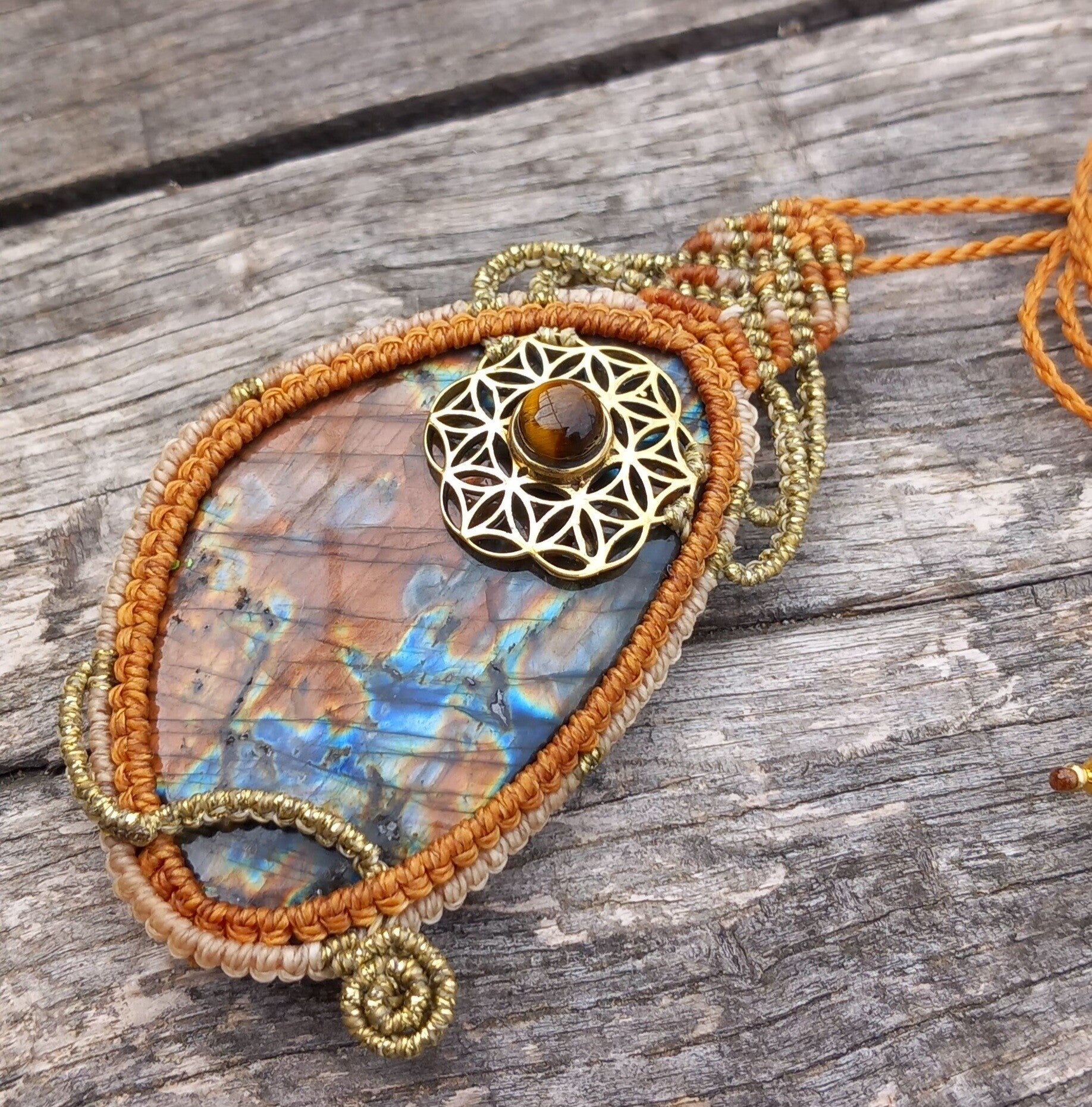 Pendentif avec une magnifique labradorite spectrolite aux reflets orangés