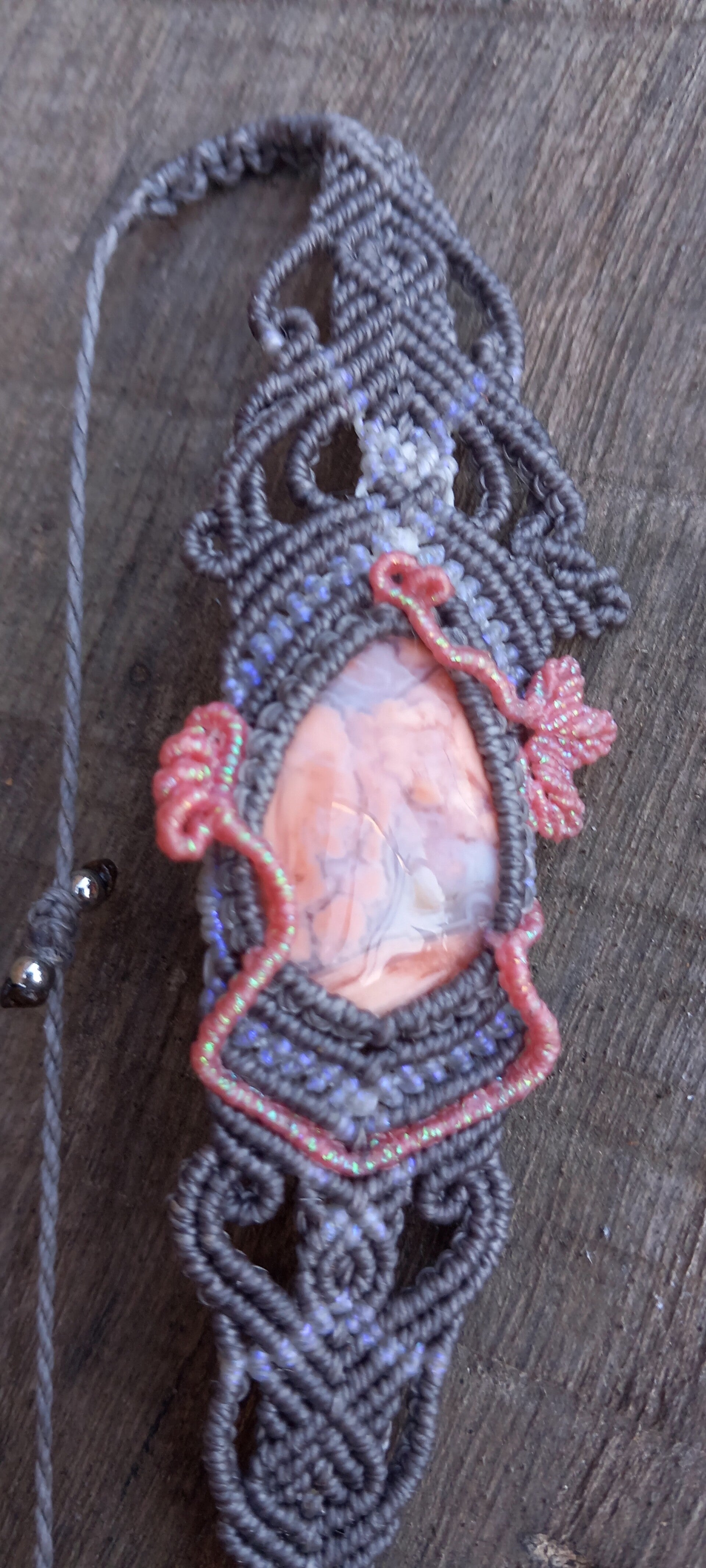 Bracelet avec un tissage végétal aux couleur de la pierre : une douce agate candy Cotton