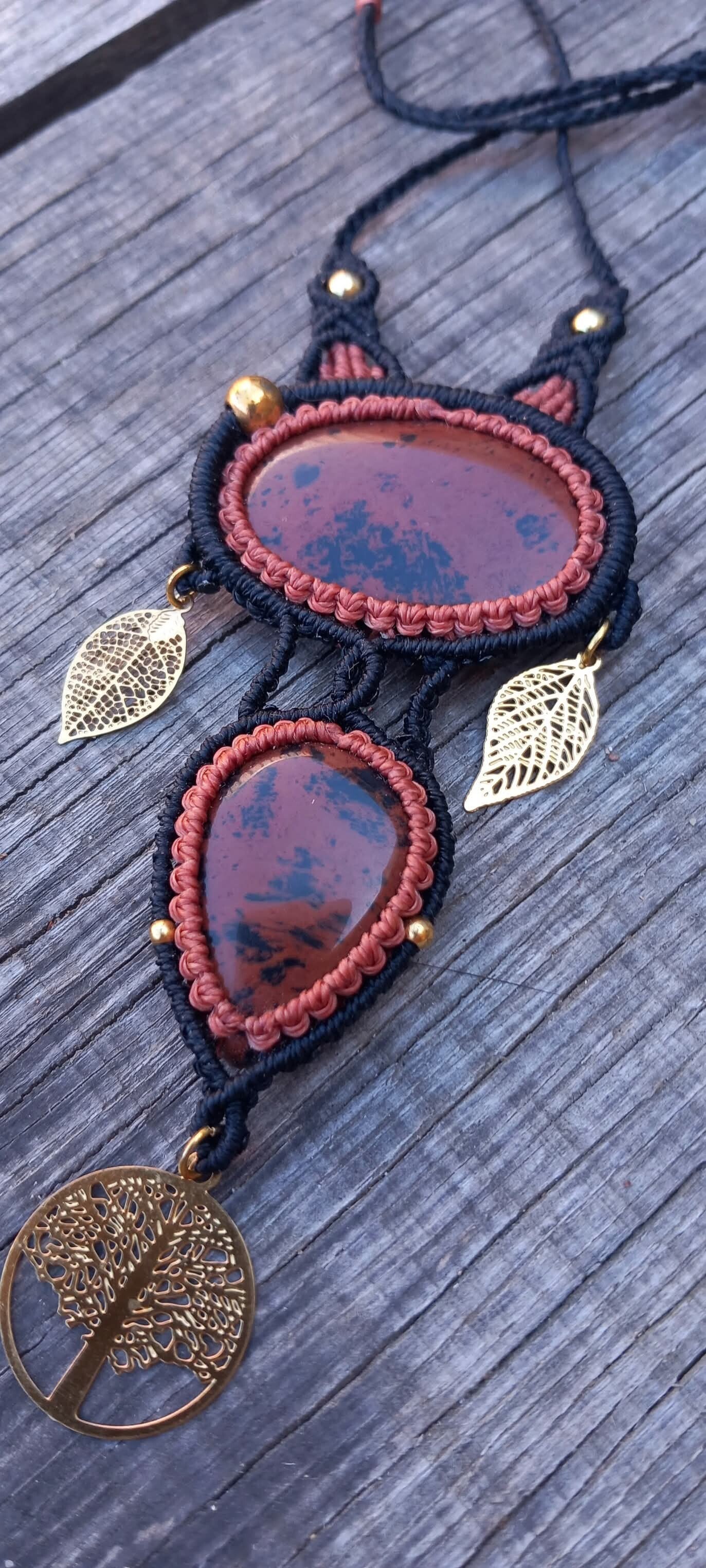 Collier en obsidiennes acajou