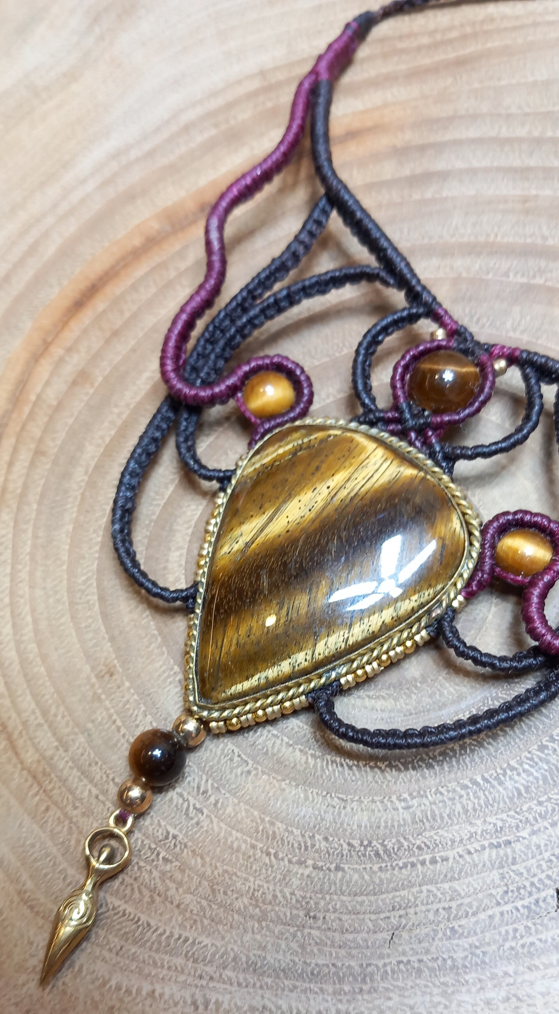 Tour de cou avec un œil de tigre serti en laiton