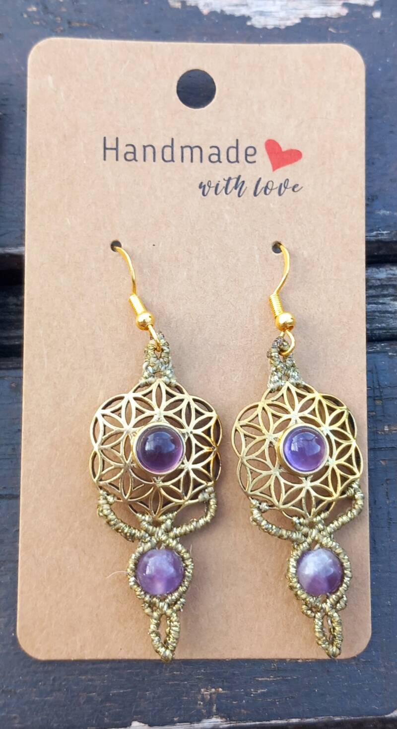 Fleur de vie en laiton avec en son centre une améthyste