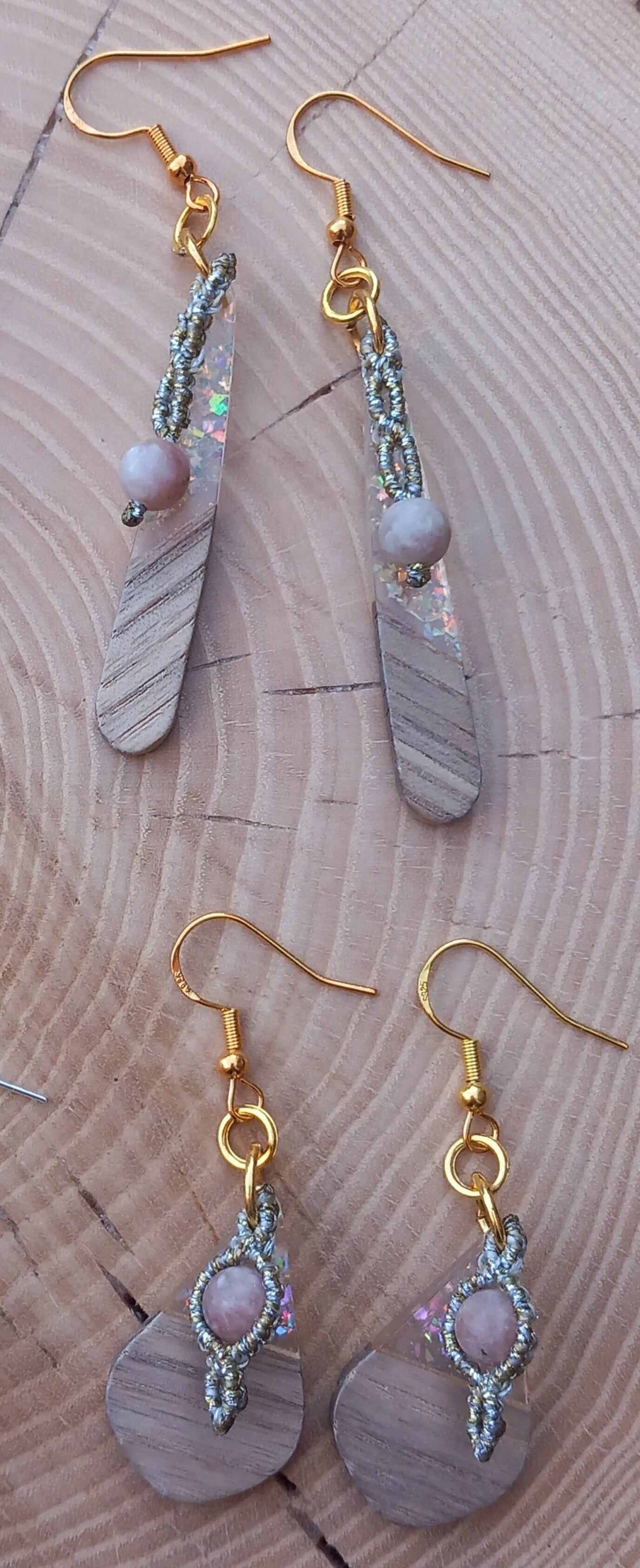 - dorées : Crochets en argent plaqué or et jaspe rose