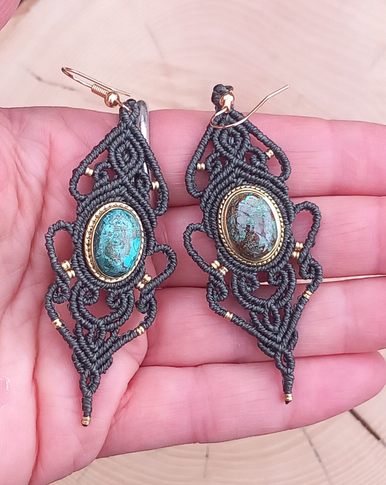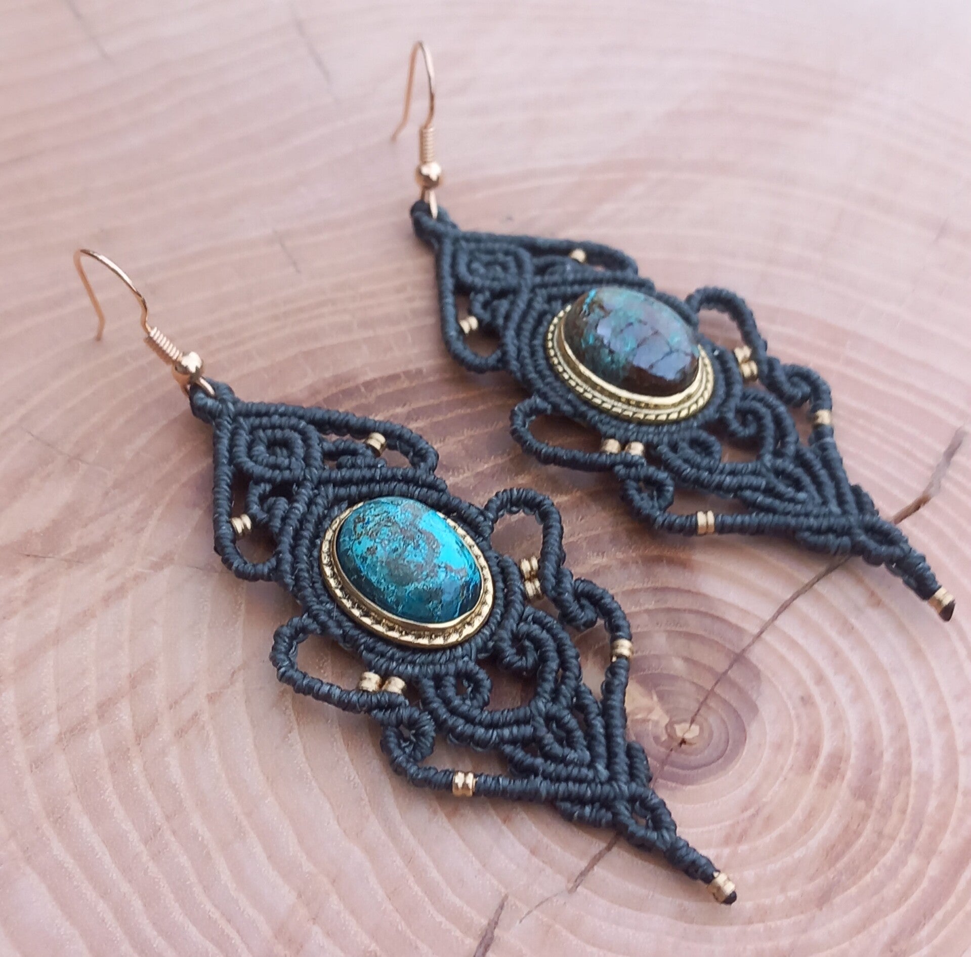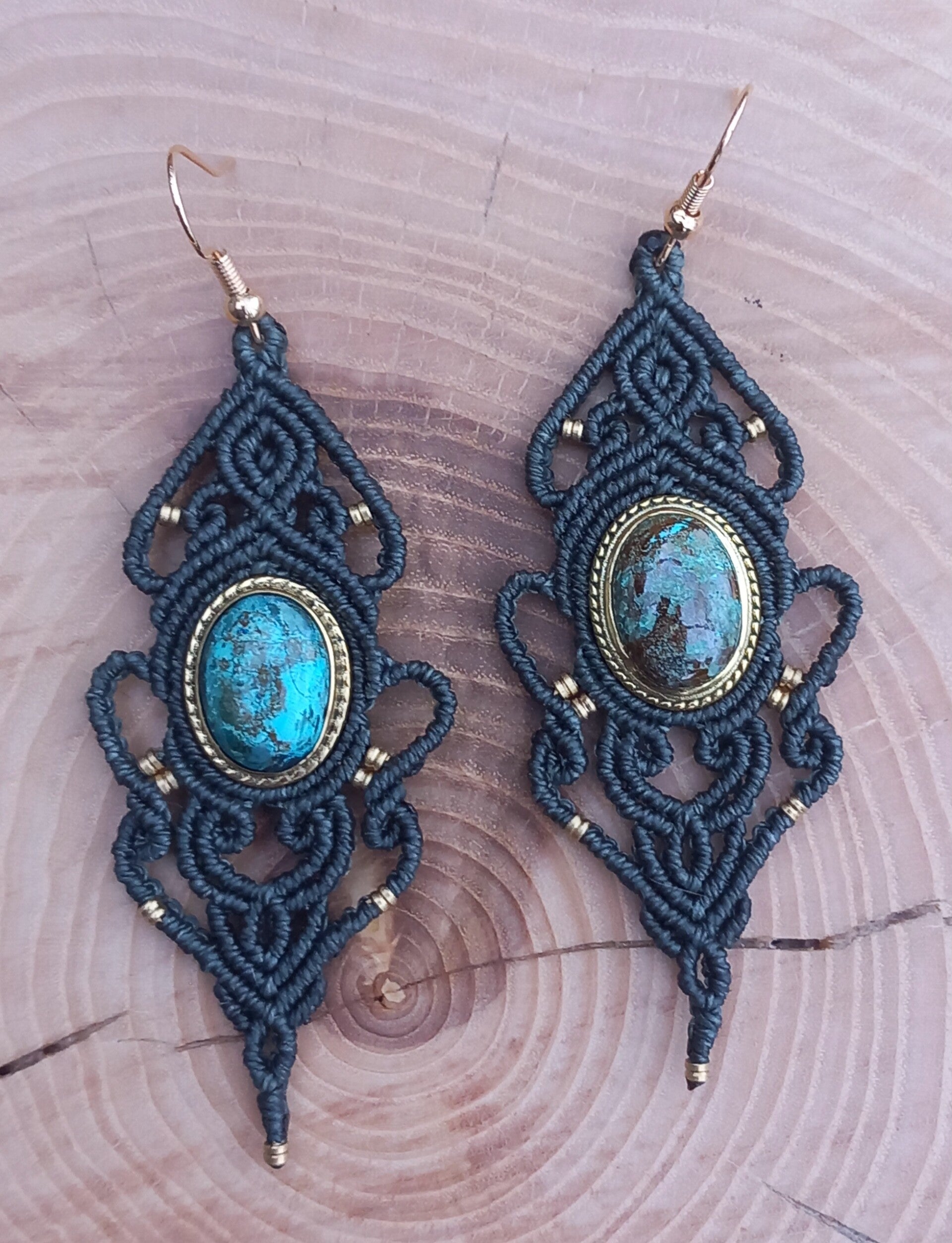 Boucles d'oreilles avex des chrysocolle serties en laiton