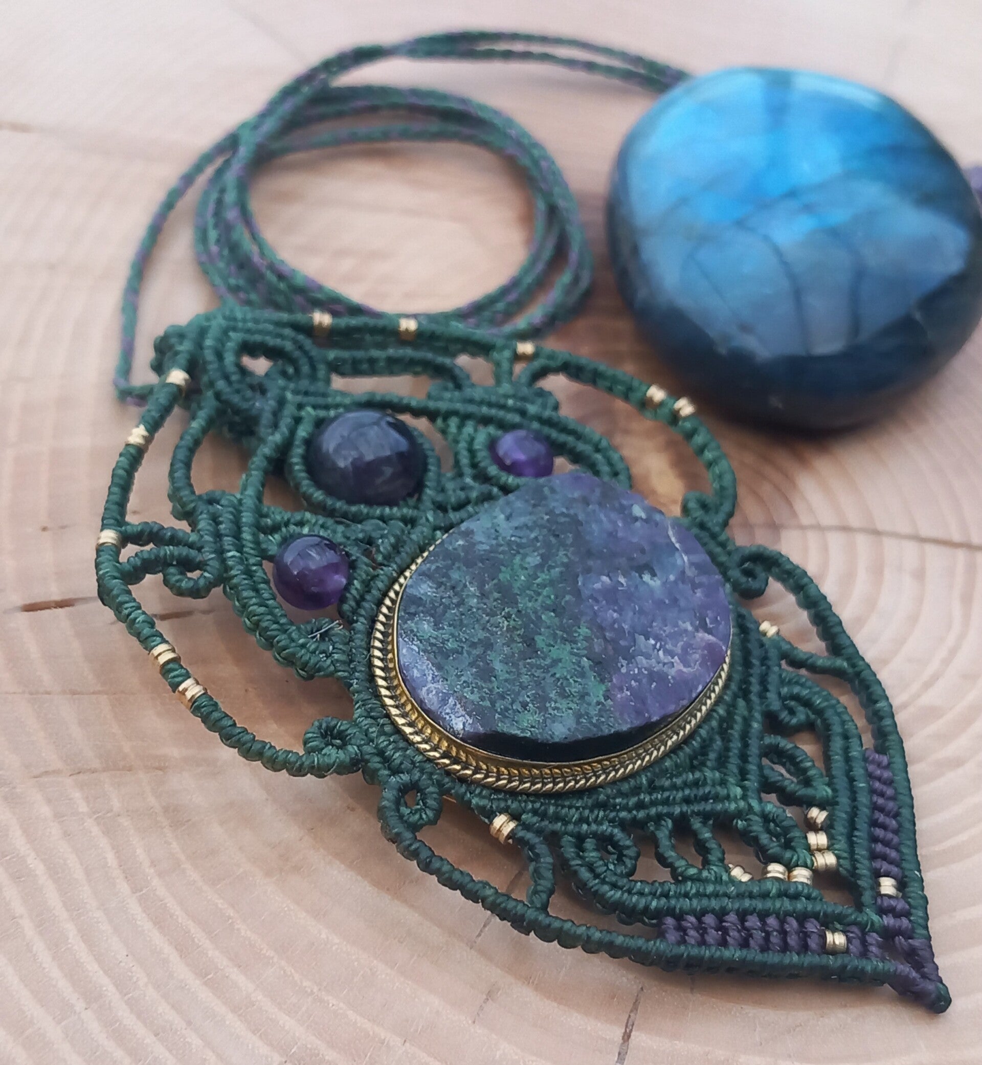 Pendentif avec un rubis sur Zoisïte brut serti en laiton