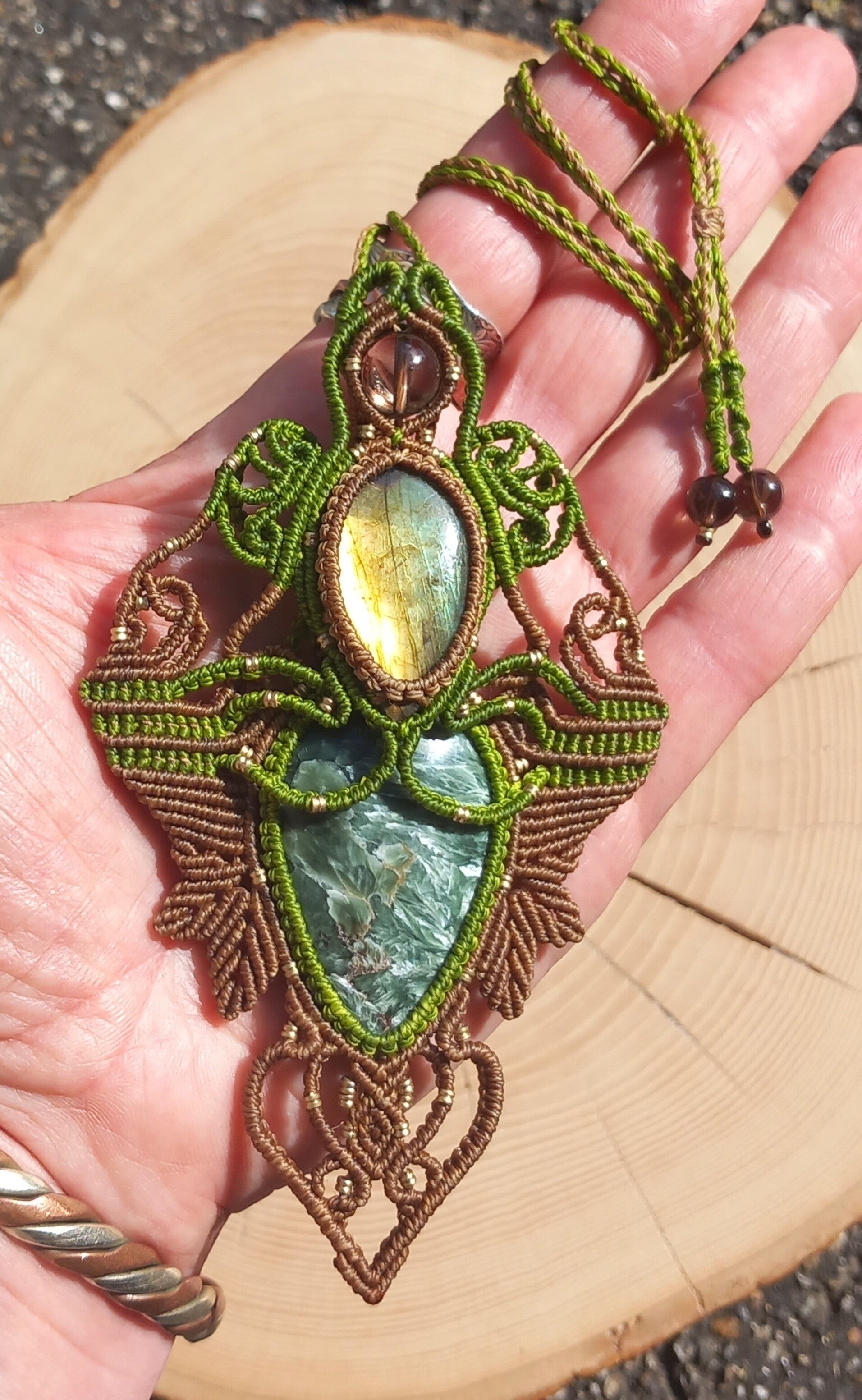 Pendentif avec une séraphinite et une labradorite aux reflets vert-dorés