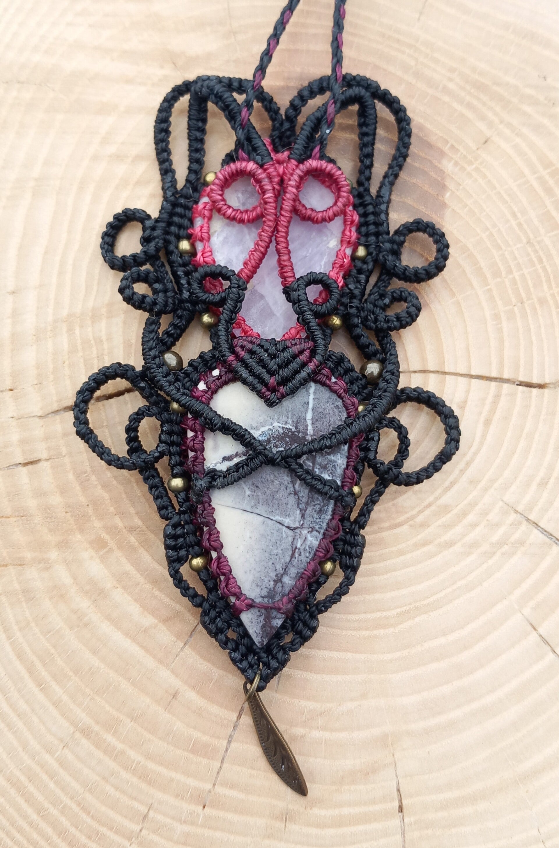Pendentif en jaspe porcelaine et en kunzite