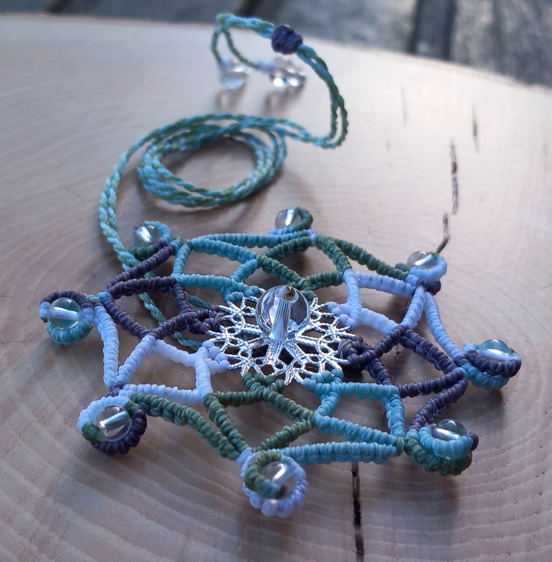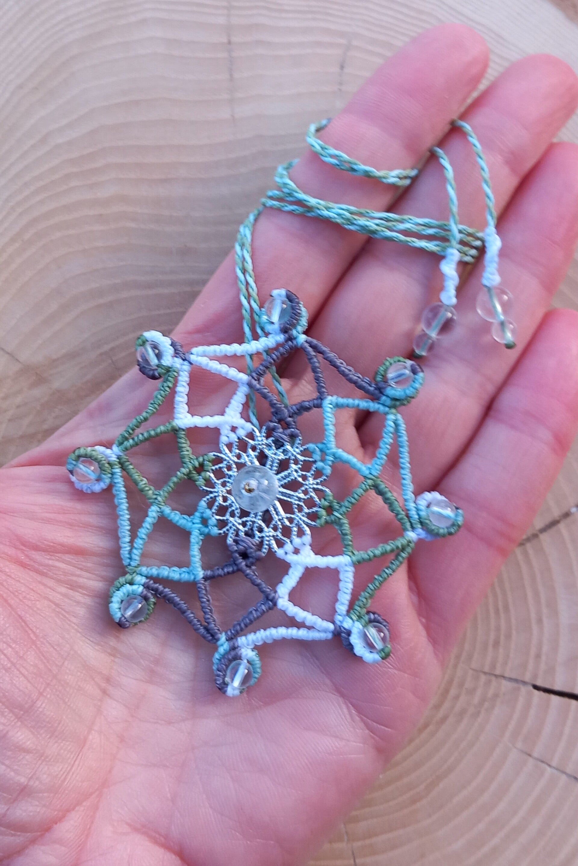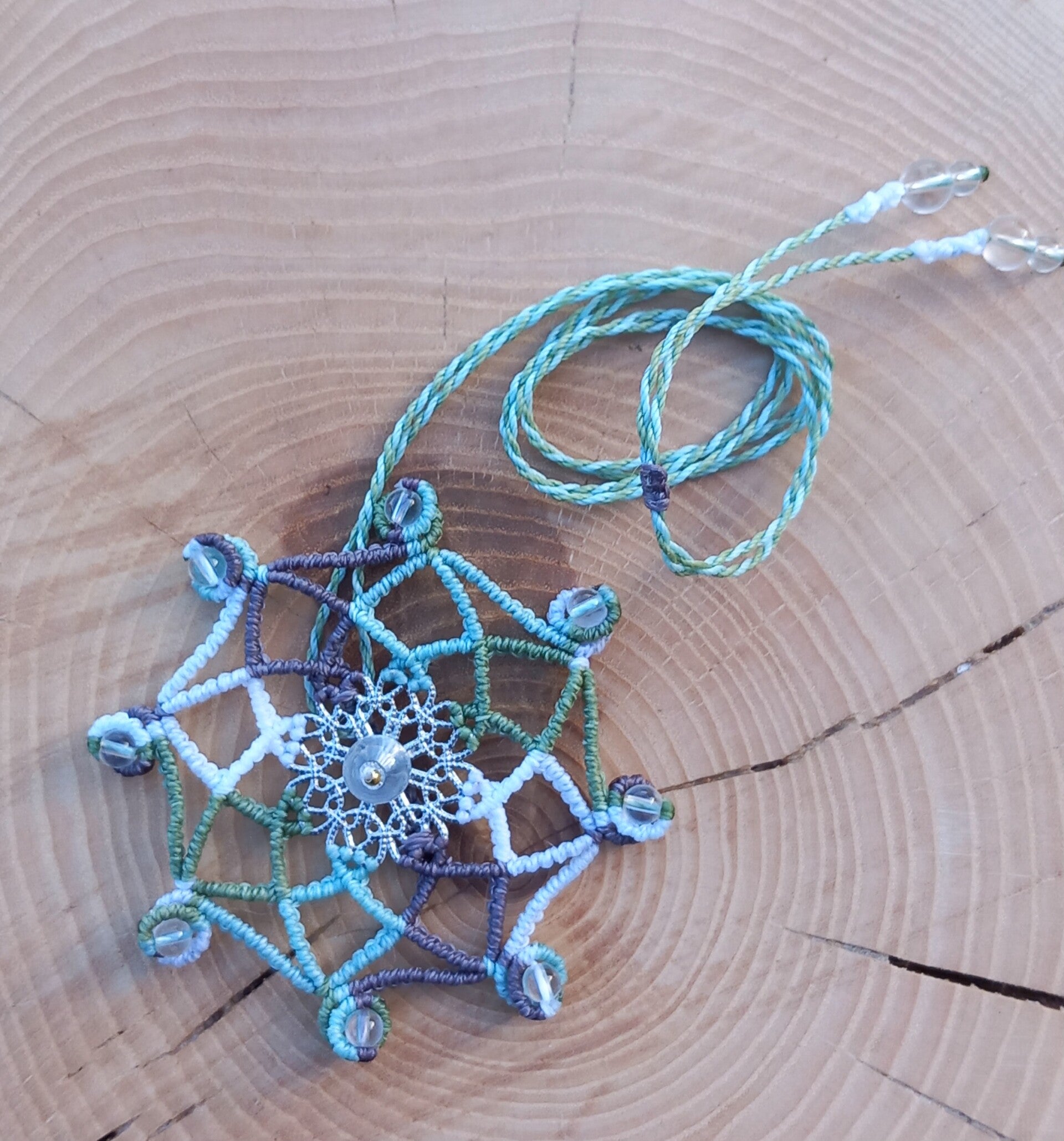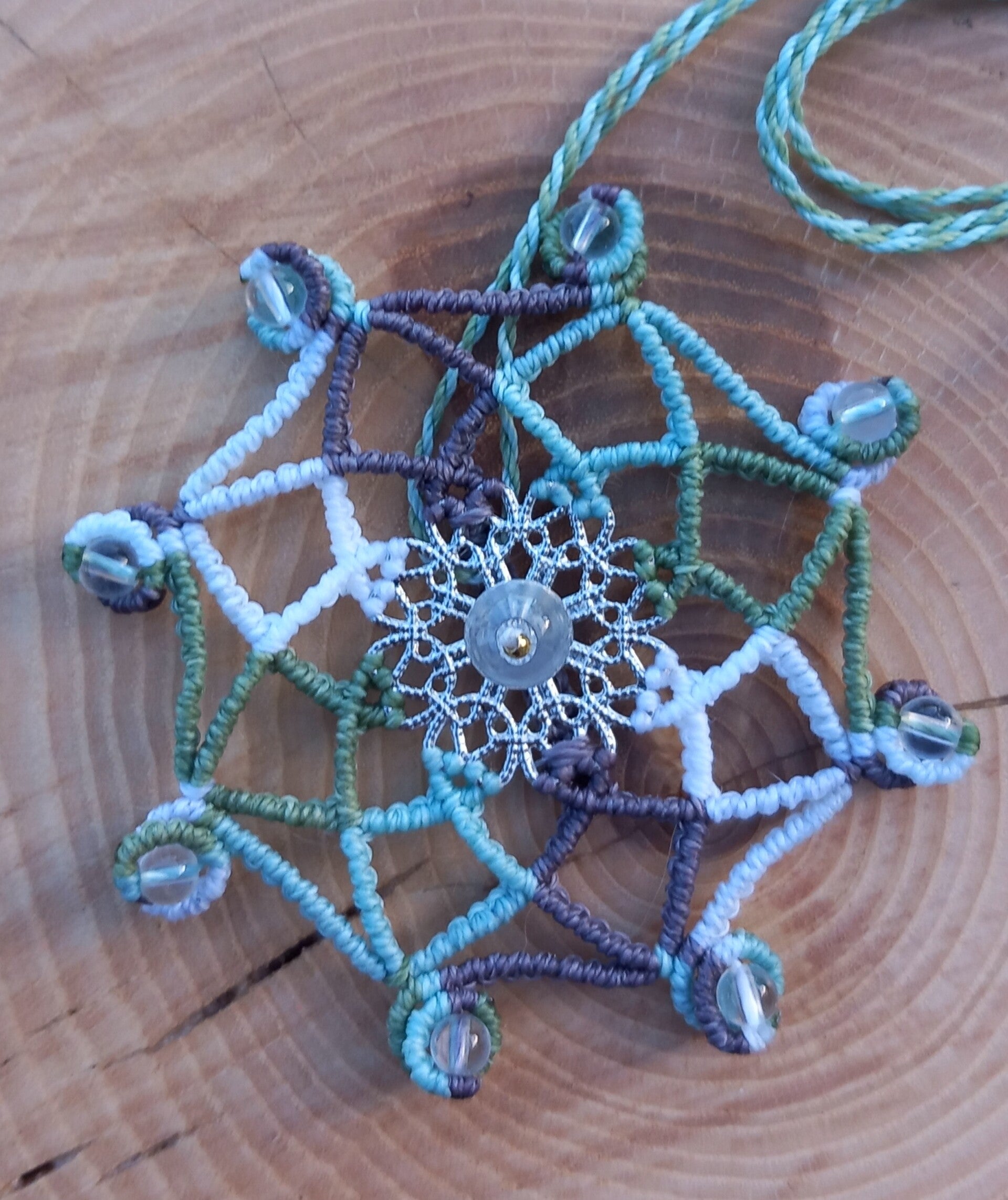 Pendentif mandala avec des perles de quartz et acier